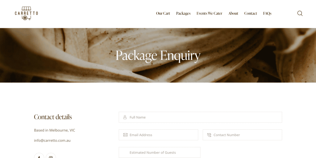 It all starts with a quick message from you, usually through our website contact or package enquiry form, though we’re also hanging out on Instagram and email.